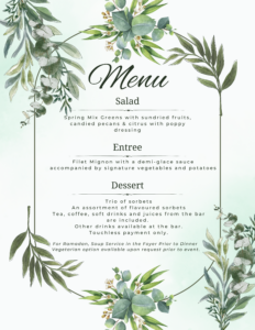 Our menu is as follows.