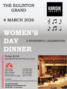 The 9th Women’s Day Dinner, organized in support of the Turkish Community Centre, whose volunteers are mostly women, will take place on Friday, March 6th, 2026, from 6:30 pm to 11:30 pm at one of Toronto’s most beautiful venues, The Eglinton Grand.